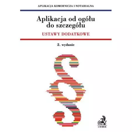 Aplikacja od ogółu do szczegółu - ustawy dodatkowe to kontynuacja popularnej wśród aplikantów pozycji Aplikacja od ogółu do szczegółu autorstwa p. Anety Heliosz. Niniejsze opracowanie to: streszczenie podstawowych, a zarazem najważniejszych wiadomości zaczerpniętych z aktów normatywnych, których znajomość jest obligatoryjna na