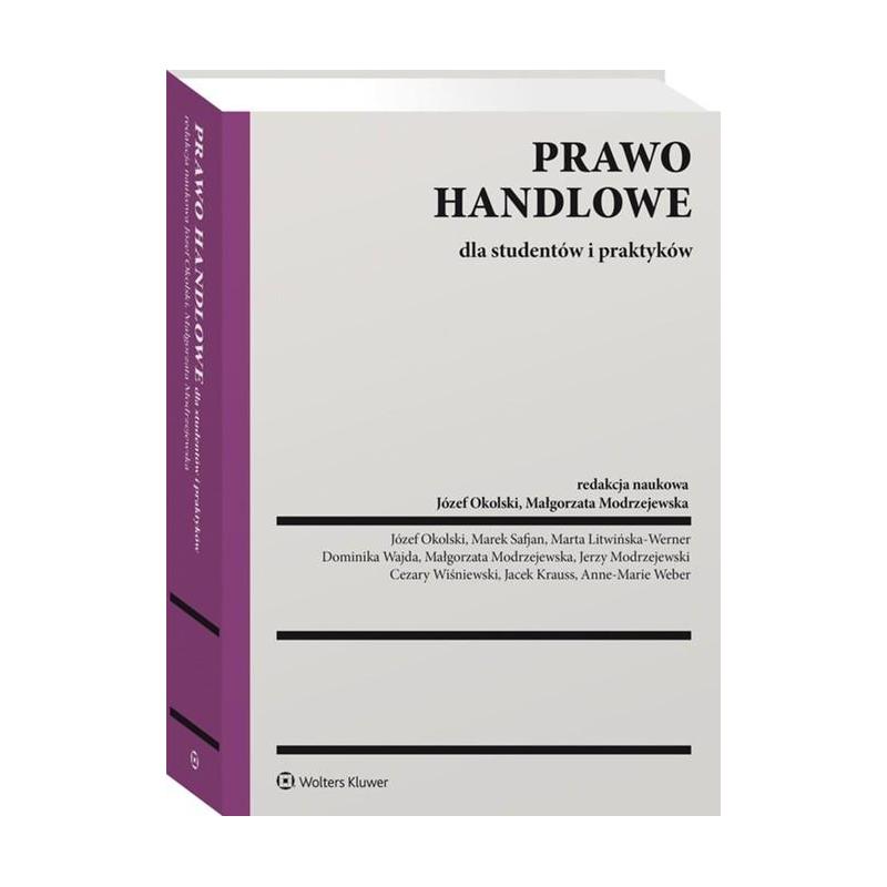 Podręcznik stanowi kompendium wiedzy z zakresu prawa handlowego i omawia wszystkie najważniejsze instytucje tej dziedziny prawa. W książce przedstawiono m.in.: - charakterystykę przedsiębiorców, w tym przede wszystkim spółek prawa handlowego, - prawo umów gospodarczych, - postępowanie upadłościowe i prawo restrukturyzacyjne, - spółkę europejską, europejskie zgrupowanie interesów gospodarczych oraz spółdzielnię europejską, - prawo papierów wartościowych i rynku kapitałowego, - podstawy ochrony prawnej konkurencji. W opracowaniu uwzględniono także m.in. zmiany ustawodawcze w prawie ochrony przed nieuczciwą konkurencją, przepisy o prostej spółce akcyjnej, jak również dotyczące powszechnej dematerializacji akcji spółek akcyjnych. Redaktorami naukowymi podręcznika i jego współautorami są prof. dr hab. Józef Okolski i doc. dr Małgorzata Modrzejewska. Zespół autorów tworzą pracownicy naukowi Katedry Prawa Handlowego Wydziału Prawa i Administracji Uniwersytetu Warszawskiego – doc. dr Jerzy Modrzejewski, dr hab. Marta Litwińska-Werner, dr hab. Dominika Wajda i dr Anne-Marie Weber, a także osoby współpracujące z Wydziałem – prof. dr hab. Marek Safjan, dr Cezary Wiśniewski i dr Jacek Krauss.