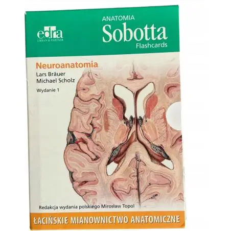 Anatomia Sobotta Flashcards to kolorowe ilustracje struktur anatomicznych połączone z szczegółowym opisem i zwięzłym omówieniem tych struktur oraz ich korelacji klinicznych i funkcjonalnych. To doskonała pomoc naukowa i uzupełnienie Atlasu anatomii człowieka Sobotty