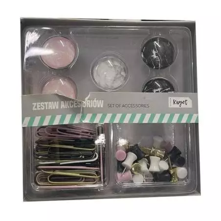 ZESTAW AKCESORIÓW BIUROWYCH SPINACZE PINEZKI MAGNESY - marmurkowy