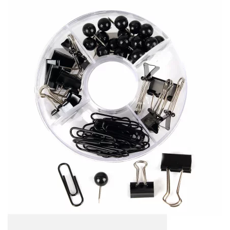 - zawiera: 10 klipów w rozmiarze 1,5 cm i 5 klipów w rozmiarze 1,8 cm; 21 spinaczy w rozmiarze 3 cm; 21 szpilek w rozmiarze 1 cm