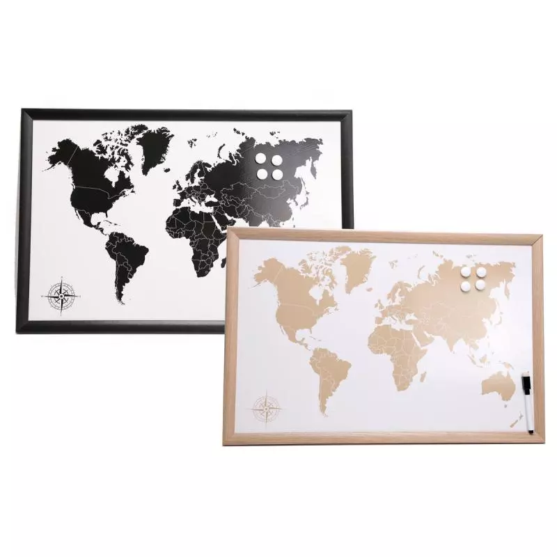 Tablica magnetyczna do robienia notatek z motywem świata, można używać na niej zmywalnych mazaków. Skład surowcowy: 90% sklejka, 10% żelazo.