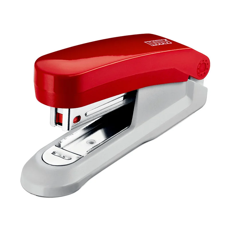 Lekki, kompaktowy zszywacz Novus E15. Urządzenie wykonane z metalu w obudowie z tworzywa sztucznego. Posiada zintegrowany metalowy rozszywacz. Umożliwia zszycie permanentne i tapicerskie. System ładowania zszywek od góry. Waga zszywacza to zaledwie 86 g! Maksymalna głębokość wsuwania kartki to 37 mm. Kolor czerwony. Dołączone 200 zszywek No.10.