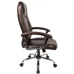 Fotel DELUXE charakteryzuje się profilowanym oparciem, które zapewnia odpowiednie podparcie odcinka lędźwiowego, co znacząco poprawia komfort pracy i chroni zdrowie kręgosłupa. Wysoki zagłówek oferuje wygodne wsparcie dla głowy, a szerokie, miękkie podłokietniki zwiększają wygodę użytkowania.