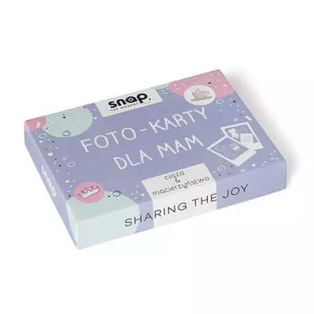 Snap the moment foto-karty zapakowane są w specjalnie zaprojektowane, ekologiczne pudełko, umożliwiające ich późniejsze przechowywanie. Produkt doskonale nadaje się na prezent. Idealny dla przyszłej mamy.