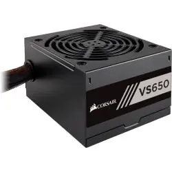 Corsair VS650 to solidny zasilacz ATX przeznaczony do komputerów domowych, biurowych oraz średniej klasy zestawów gamingowych. Zapewnia stabilną moc 650W, wysoką sprawność potwierdzoną certyfikatem 80 PLUS oraz niezawodną ochronę podzespołów dzięki szeregowi zabezpieczeń.