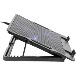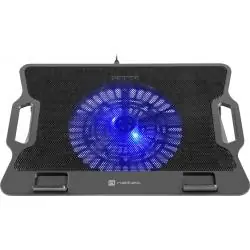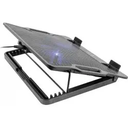 Natec Dipper to funkcjonalna podstawka chłodząca, która łączy ergonomię, skuteczne chłodzenie i dodatkowe porty USB. Została zaprojektowana z myślą o laptopach o przekątnej do 15,6 cala. Wyposażona w podświetlany wentylator 200 mm oraz regulację kąta nachylenia, zapewnia komfort pracy i bezpieczeństwo Twojego sprzętu.