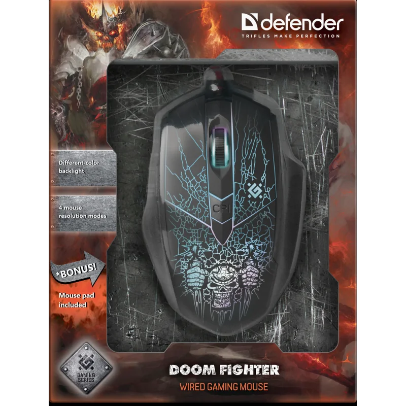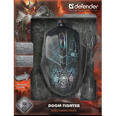 Defender Doom Fighter GM-260L to doskonała mysz gamingowa dla graczy komputerowych, którzy potrzebują niezawodnego sprzętu o wysokiej precyzji. Sprawdza się zarówno w grach akcji, jak i w codziennym użytkowaniu. Ergonomiczna konstrukcja i efektowne podświetlenie sprawiają, że to idealny wybór do każdego zestawu gamingowego.