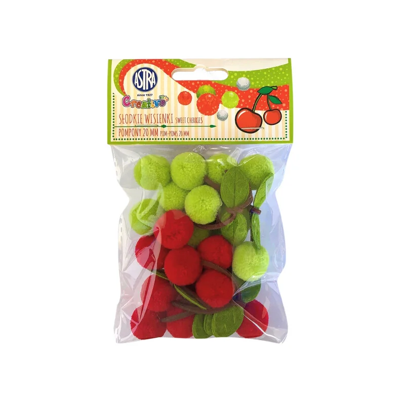 Pompomy dekoracyjne Słodkie Wiśenki to lekkie, kolorowe i atrakcyjne ozdoby, które sprawdzą się w pokoju dziecięcym, na przyjęciach oraz w kreatywnych projektach DIY. Bezpieczne materiały i łatwość montażu pozwalają szybko odmienić każde wnętrze.