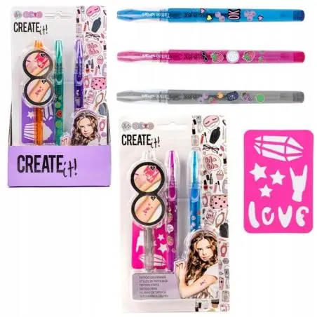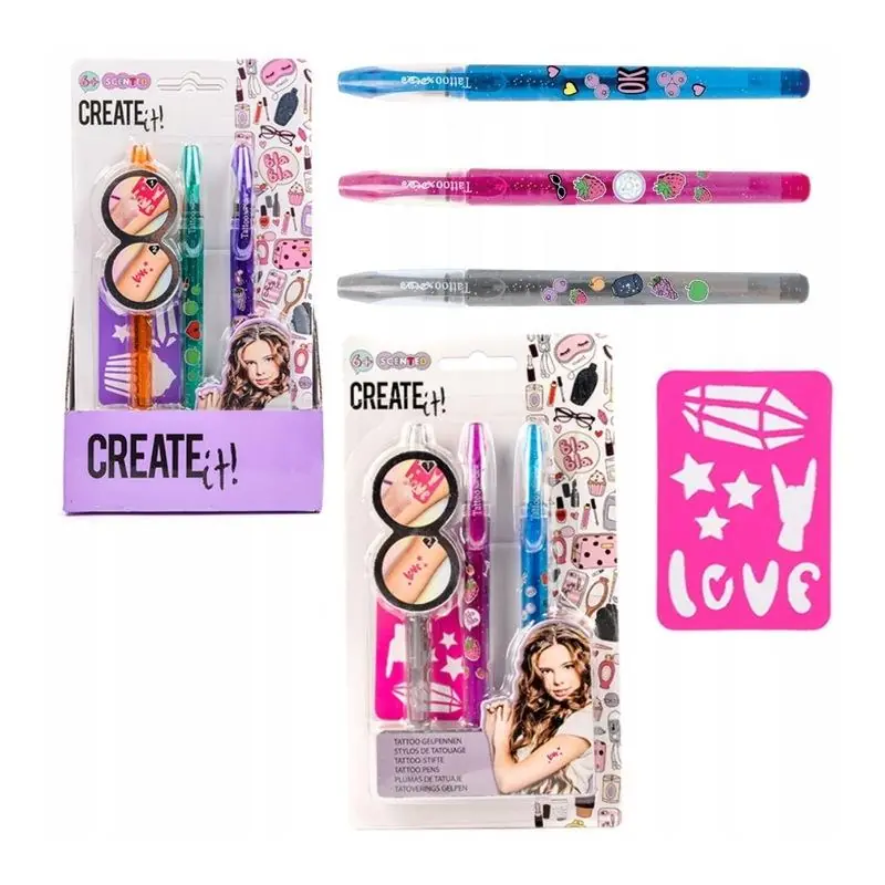 Pisaki do tatuażu zapachowe CREATE IT! z wzornikami to połączenie zabawy, twórczej ekspresji i bezpieczeństwa. Idealne dla dzieci, które lubią rysować, dekorować skórę i tworzyć własne, nietrwałe wzory.