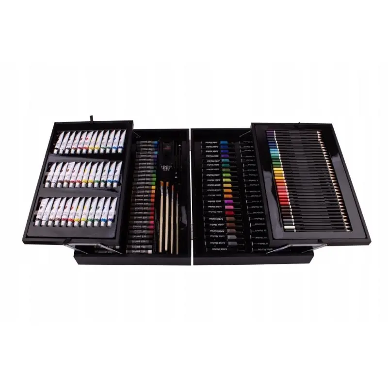 Zestaw artystyczny w drewnianej walizce 174 elementy Beniamin to kompletny pakiet kreatywny dla dzieci, idealny do rysowania, malowania i tworzenia wyjątkowych projektów plastycznych. Elegancka drewniana walizka pozwala wygodnie przechowywać wszystkie akcesoria i zachęca do rozwijania talentów artystycznych.