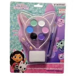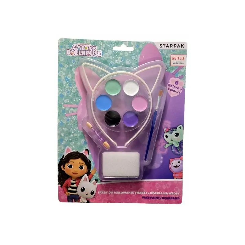 STARPAK Farby do malowania twarzy KOCI DOMEK GABI 6 kolorów to praktyczny i bezpieczny zestaw artystyczny dla dzieci, pozwalający na tworzenie kreatywnych wzorów na twarzy. Doskonałe do zabawy w domu, przedszkolu, szkole i podczas przyjęć tematycznych.