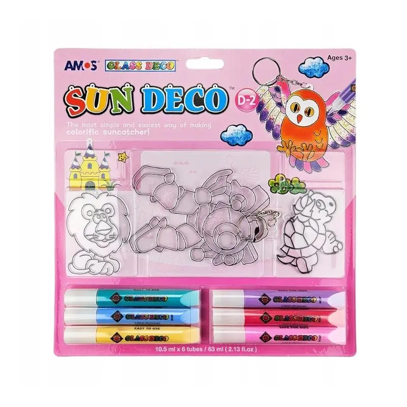 Farby witrażowe Sun Deco AMOS 10.5 ml x 6 kolorów to zestaw stworzony z myślą o dzieciach, które uwielbiają twórcze zabawy plastyczne. Umożliwiają tworzenie kolorowych dekoracji witrażowych na szkle i innych gładkich powierzchniach. Intensywne barwy
