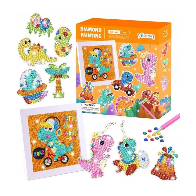Diamentowa mozaika brelok Dinozaur to kreatywny zestaw DIY do samodzielnego wyklejania kolorowymi kryształkami. Produkt łączy funkcję zabawy i nauki, rozwijając zdolności manualne, koncentrację oraz koordynację wzrokowo-ruchową. Gotowy breloczek z motywem dinozaura może służyć