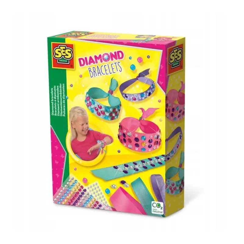 SES Diamentowe opaski i bransoletki pozwalają dzieciom rozwijać kreatywność, zdolności manualne i poczucie estetyki. Samoprzylepne diamenty i łatwe w użyciu wstążki umożliwiają tworzenie wyjątkowej biżuterii bez pomocy dorosłych.