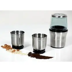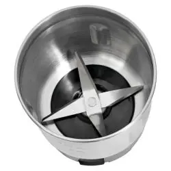 Pierwszy z nich posiada dwa ostrza i daje możliwość przygotowania ok. 8 porcji świeżej, aromatycznej kawy (85g). Drugi sprawdzi się jako rozdrabniacz - dzięki 4 ostrzom poradzi sobie z mniejszymi produktami spożywczymi, takimi jak na przykład ugotowane jajka, zioła, migdały, cebula, czosnek, parmezan. Dzięki silnikowi o mocy 200 W sprawnie zmieli również ziarna i orzechy.