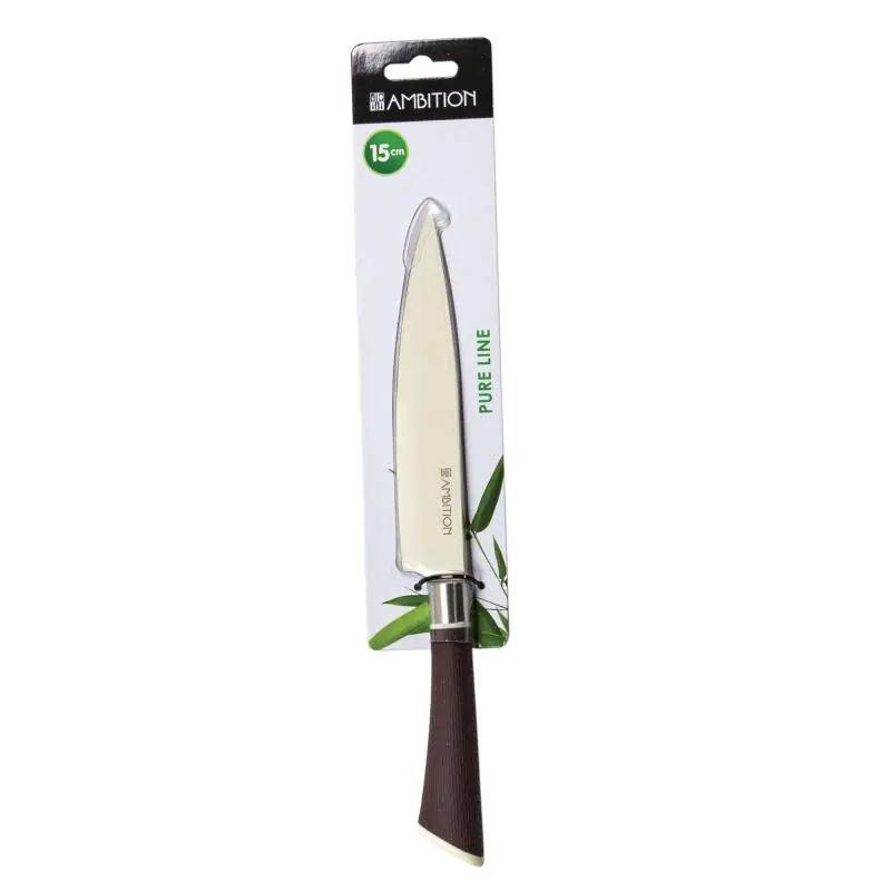 Nóż uniwersalny Pure Line marki Ambition to niezbędne narzędzie w każdej kuchni — zarówno domowej, jak i profesjonalnej. Dzięki długości ostrza 15 cm i wyważonej konstrukcji doskonale sprawdza się do codziennych prac kuchennych. Produkt skierowany jest do osób ceniących wysoką jakość