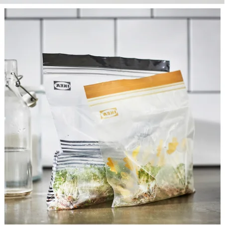 Woreczki IKEA ISTAD to uniwersalne i ekologiczne rozwiązanie do przechowywania żywności, które pomaga ograniczyć marnowanie jedzenia, uporządkować kuchnię i dbać o środowisko. Dzięki solidnemu zapięciu i trwałemu materiałowi, można je wykorzystywać wielokrotnie – zarówno w domu, jak i w podróży.