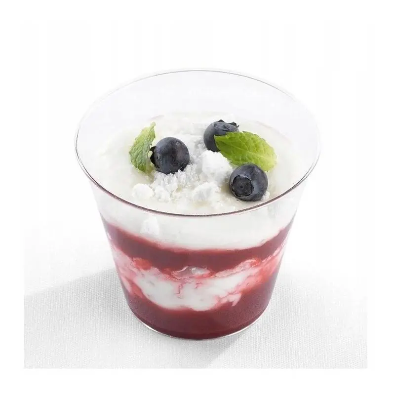 Transparentny pucharek deserowy Sabert CLEAR 230 ml to praktyczne i eleganckie naczynie do serwowania musów, tiramisu, galaretek, verrine czy innych słodkości. Dzięki przezroczystemu wykończeniu doskonale eksponuje warstwy deseru, podnosząc jego walory wizualne zarówno w gastronomii stacjonarnej, jak i podczas eventów oraz cateringu.