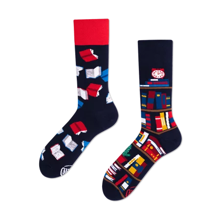 Nie ważne, czy dostojnym krokiem przechadzasz się wśród regałów w bibliotece, czy chwiejnie balansujesz z książką w tramwajowym wagonie. Jeśli jesteś molem książkowym, który najlepiej czuje się z nosem w lekturze, to nasze najnowsze skarpetki nie do pary są właśnie dla Ciebie! Stylowe skarpetki w książki od Many Mornings inspirują, zachwycają i finezyjnie uzupełniają garderobę – to widać jak na dłoni.