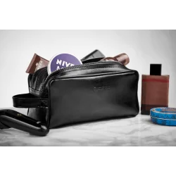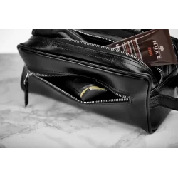 Kosmetyczka skórzana to niezbędny towarzysz w każdej podróży. Uszyta ręcznie z użyciem bardzo trwałego materiału, jakim jest naturalna skóra licowa, będzie służyć Ci przez długie lata i nie ulegnie zniekształceniu, nawet kiedy włożysz do niej dużą ilość kosmetyków czy wrzucisz ją do wypełnionej po brzegi walizki. Duża kosmetyczka dostępna jest w klasycznych, ponadczasowych kolorach, dlatego będzie pasowała do każdego rodzaju bagażu. Znajdziesz w niej wystarczająco dużo miejsca na niezbędne przybory kosmetyczne. Wnętrze wyściełane jest czarną podszewką, którą w razie potrzeby można łatwo wyczyścić.
