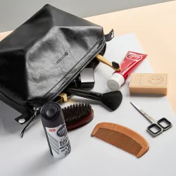 Kosmetyczka skórzana to bardzo elegancki i luksusowy dodatek Twojego bagażu. Uszyta ręcznie z użyciem bardzo trwałego materiału, jakim jest naturalna skóra licowa, będzie służyć Ci przez długie lata i nie ulegnie zniekształceniu, nawet kiedy włożysz do niej dużą ilość kosmetyków czy wrzucisz ją do wypełnionej po brzegi walizki. Boczne krawędzie wzmocnione są paskiem ze skóry, co dodatkowo wspomaga utrzymanie prawidłowego kształtu kosmetyczki. Małe paseczki na zatrzask znajdujące się na krawędziach, umożliwiają złożenie kosmetyczki w płaski pakiecik, co gwarantuje łatwe przechowywanie w szafie. Duża kosmetyczka dostępna jest w klasycznych, ponadczasowych kolorach. Znajdziesz w niej wystarczająco dużo miejsca na niezbędne przybory kosmetyczne. Wnętrze wyściełane jest czarną podszewką, którą w razie potrzeby można łatwo wyczyścić.