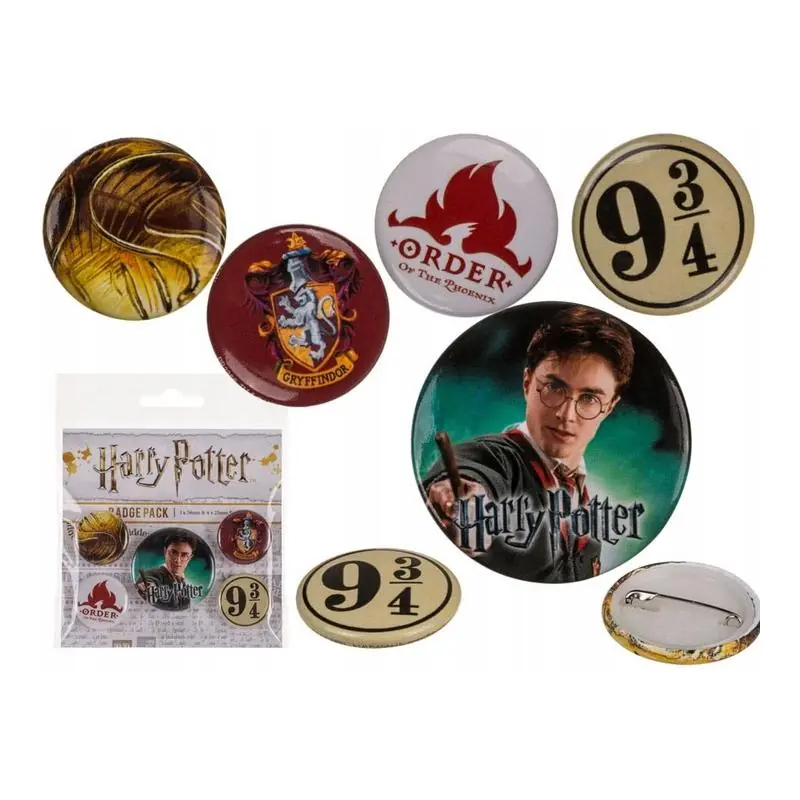 PRZYPINKI DO UBRAŃ PLECAKA HARRY POTTER (5 SZTUK) to wysokiej jakości, kolekcjonerski zestaw, który pozwala wyrazić pasję do świata czarodziejów. Idealny do dekoracji plecaków, ubrań i akcesoriów, a także jako prezent dla fanów Harry’ego Pottera.