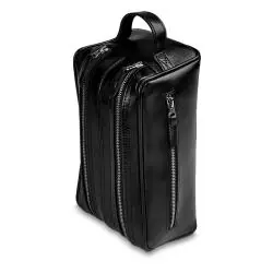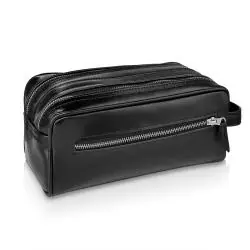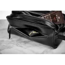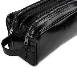 Czarna skórzana kosmetyczka Betlewski GFT-1 to eleganckie i funkcjonalne akcesorium stworzone z myślą o wygodnym przechowywaniu kosmetyków oraz akcesoriów pielęgnacyjnych. Wykonana z naturalnej skóry, łączy klasyczny design z wysoką trwałością, idealnie sprawdzając się zarówno w podróży, jak i w codziennym użytkowaniu.
