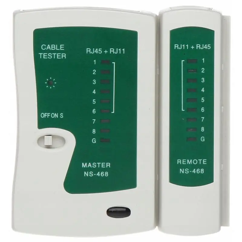Tester sieciowy Lanberg NS-468 to praktyczne narzędzie, które pozwala w łatwy sposób sprawdzić poprawność zaprawienia kabli typu RJ45, RJ11, RJ12. Solidna obudowa z wytrzymałego tworzywa sztucznego sprawdzi się podczas intensywnych prac instalatorskich.