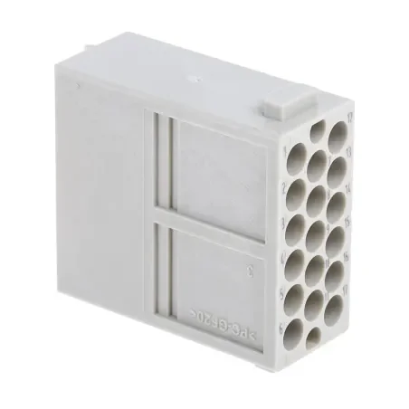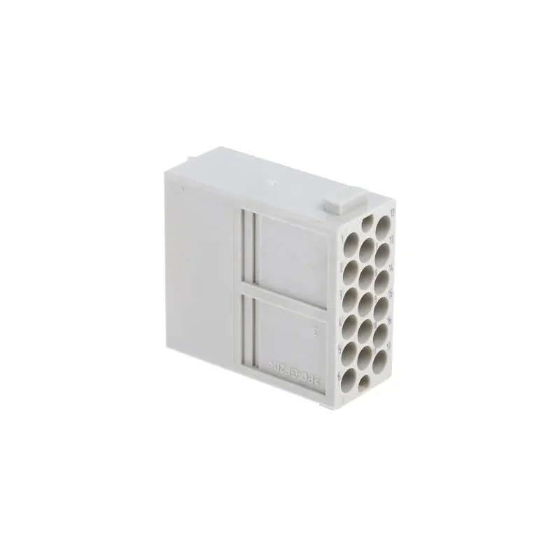 Wkładka stykowa HARTING 17-pinowa z serii Han-Modular® to profesjonalny moduł przeznaczony do złączy przemysłowych. Wersja męska, w technologii zaciskowej, zapewnia pewne i trwałe połączenie w aplikacjach wymagających dużej liczby cykli łączeniowych – nawet do 10.000 operacji.