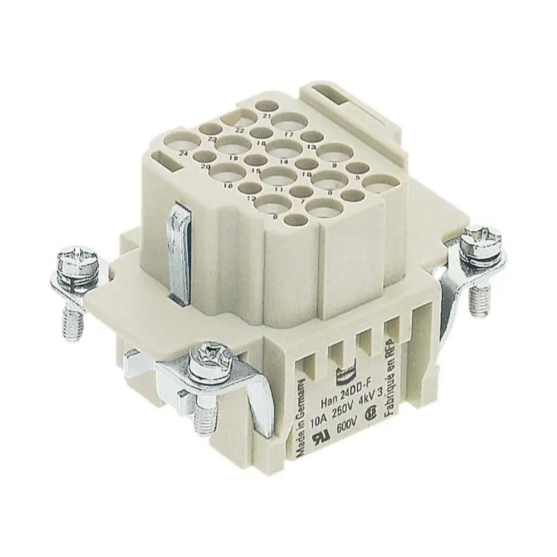 Żeńska wkładka Han® DD 24-pin znajduje szerokie zastosowanie w: