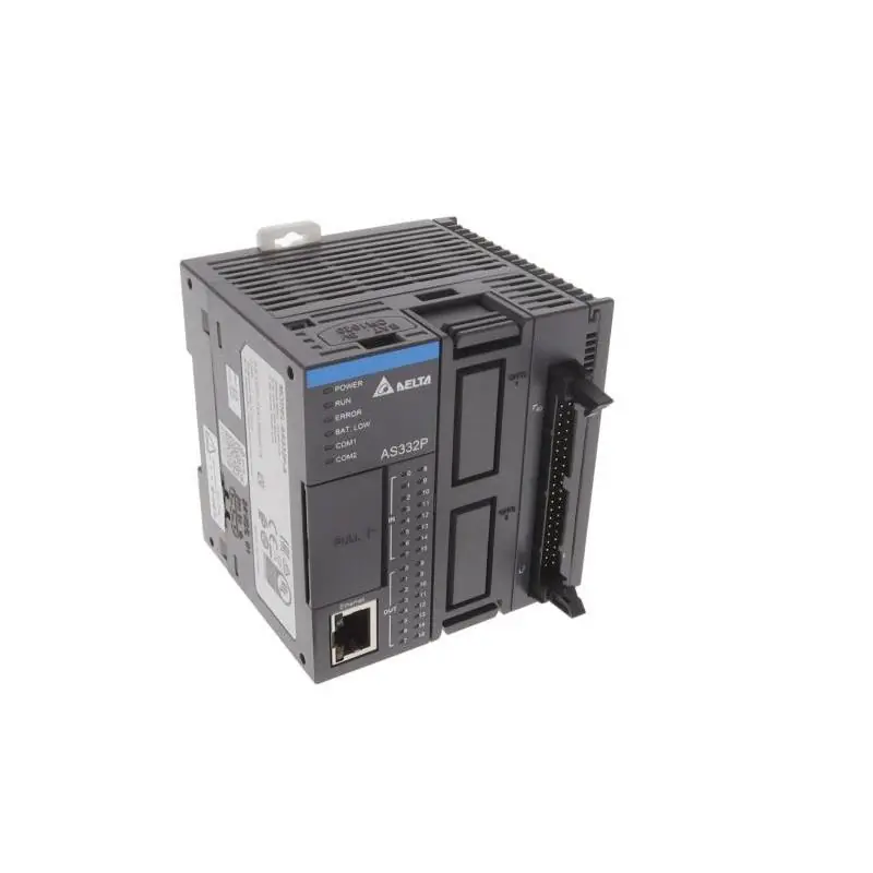 Delta AS332P-A to kompaktowy, modułowy sterownik PLC klasy średniej z serii AS300, zaprojektowany do zastosowań przemysłowych wymagających wysokiej wydajności i elastyczności. Wyposażony w nowoczesny 32-bitowy procesor SoC, oferuje szybkość przetwarzania do 40 tys. kroków/ms, a jego wbudowane funkcje komunikacyjne czynią go doskonałym rozwiązaniem do automatyzacji produkcji.