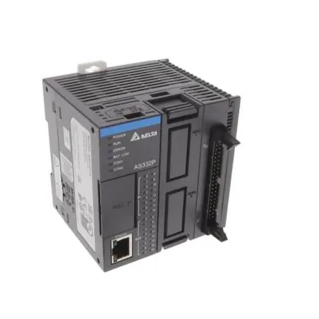 Delta AS332P-A to kompaktowy, modułowy sterownik PLC klasy średniej z serii AS300, zaprojektowany do zastosowań przemysłowych wymagających wysokiej wydajności i elastyczności. Wyposażony w nowoczesny 32-bitowy procesor SoC, oferuje szybkość przetwarzania do
