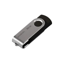 Pendrive GOODRAM UTS2 32GB to praktyczne i trwałe rozwiązanie do przechowywania danych. Wyposażony w interfejs USB 2.0 zapewnia odczyt do 20 MB/s i zapis do 5 MB/s, co umożliwia szybki transfer zdjęć, filmów, muzyki czy dokumentów. Klasyczna czarna obudowa z obrotową metalową osłoną chroni złącze i sprawia, że pendrive jest zawsze gotowy do