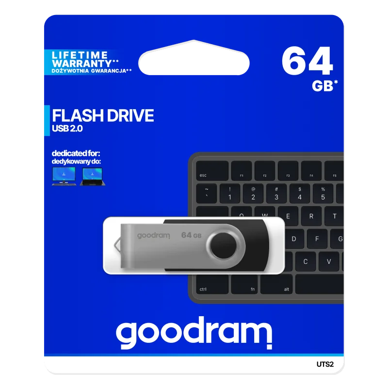 Pendrive GOODRAM UTS2 został zaprojektowany z myślą o prostocie i wygodzie użytkowania. Wystarczy podłączyć go do portu USB, aby natychmiast rozpocząć kopiowanie lub odczyt danych – bez konieczności instalowania dodatkowych sterowników. Dzięki kompaktowym wymiarom i praktycznemu uchwytowi z łatwością przypniesz go do kluczy lub torby.