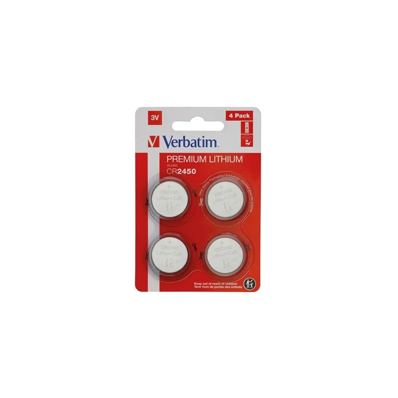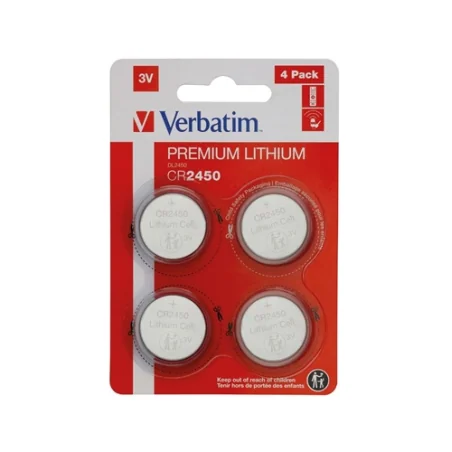 Baterie litowe CR2450 marki Verbatim to wydajne źródło zasilania przeznaczone do szerokiej gamy urządzeń elektronicznych, takich jak piloty, wagi, zegarki, sprzęt medyczny czy inteligentne czujniki. Zestaw zawiera cztery sztuki baterii CR2450 o napięciu 3V, które wyróżniają się długim czasem