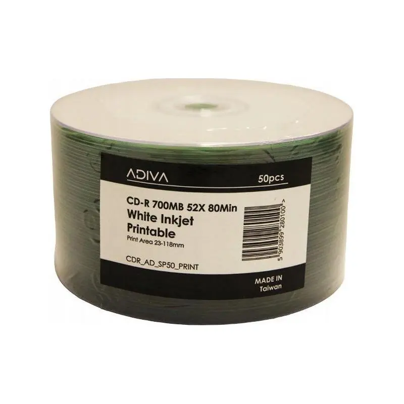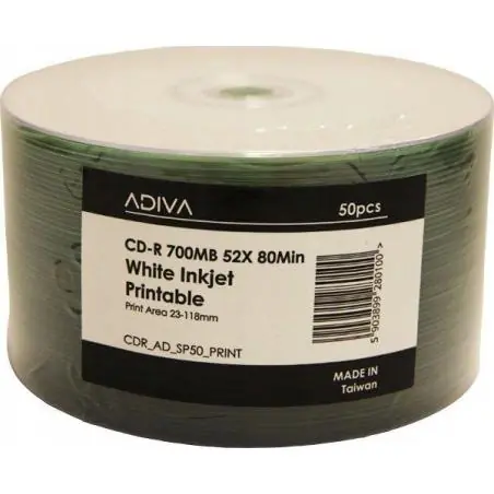 Adiva CD-R 700MB 52x White Inkjet Printable to wysokiej jakości nośniki stworzone z myślą o maksymalnej niezawodności zapisu oraz profesjonalnym druku atramentowym. Płyty zapewniają doskonałą kompatybilność z nagrywarkami i drukarkami atramentowymi, oferując stabilny zapis danych oraz najwyższą jakość nadruku na całej powierzchni