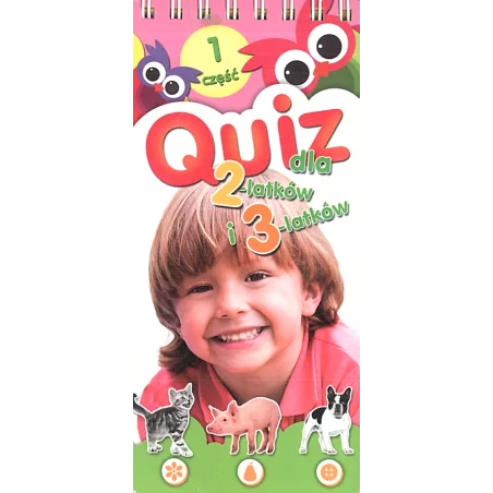Quiz dla 2-latków i 3-latków 80 obrazkowych zadań dla 2-, 3-latków, w których dziecko wskazuje poprawne odpowiedzi. Poręczny format sprawia, że książeczka doskonale sprawdza się na spacerze, w podróży, w poczekalni i w innych codziennych sytuacjach. Z quizami dziecko uczy się i sprawdza swoją wiedzę!