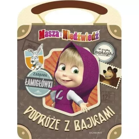 Masza i Niedźwiedź. Podróże z bajkami to bajkowa walizeczka, dzięki której każda podróż upłynie w przyjemnej atmosferze, wypełniona kolorowankami, łamigłówkami, zgadywankami i zadaniami z wykorzystaniem naklejek. Psotna Masza i jej wierny poczciwy przyjaciel Niedźwiedź będą doskonałymi towarzyszami podróży dla twojego dziecka. Dość