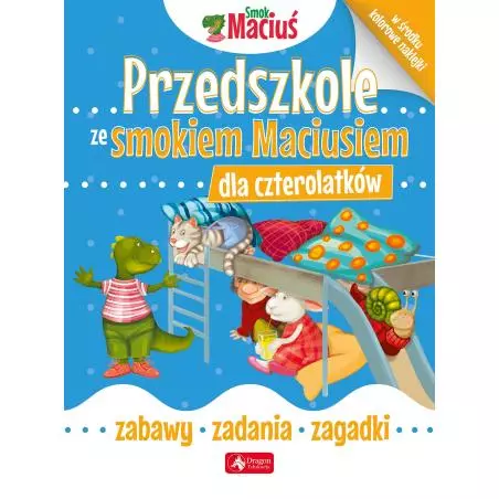 | Zadania ze smokiem Maciusiem to seria zeszytów edukacyjnych przeznaczona dla dzieci w wieku przedszkolnym. Dzięki specjalnie dobranym zadaniom dzieci poznają świat, wzbogacają słownictwo, uczą się logicznego myślenia, ćwiczą koncentrację oraz grafomotorykę. Dodatkowo zamieszczone w zeszytach naklejki pozwalają rozwinąć zręczność manualną. |