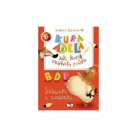 W tym zeszycie razem z kurą Adelą będziemy: – kreślić znaczki i ozdabiać ubrania – rozpoznawać i pisać litery w, W, m, M, u, U – szukać szczegółów, którymi różnią się rysunki – łączyć cyfry od najmniejszej do największej – pomniejszać dynię rekordzistkę – kolorować parasol ryby, który boi się wody. Pomożemy także kurze Adeli dokończyć wzory na tkaninach, pomniejszyć pisklę, ziarna pszenicy zamienić w litery p, dinozaury w d, a biedronki w B.