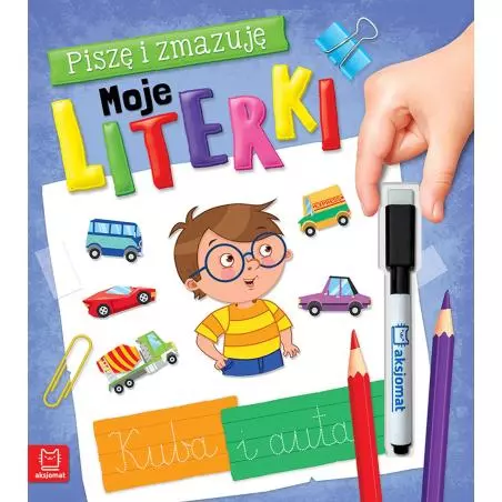 'Piszę i zmazuję. Moje literki' to książka wielokrotnego użytku, wydana na specjalnym zmywalnym papierze i z załączonym pisakiem. Dzieci znajdą tu szlaczki przygotowujące do pisania, duże wzory 24 liter oraz wyrazy i zdania do pisania po śladzie.