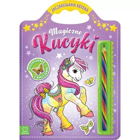 Dołączone naklejki oraz zaczarowana kolorowa kredka pomogą ozdobić finezyjne rysunki.