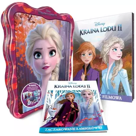 Puszka Kraina Lodu 2 to znakomity pomysł na prezent dla fanek i fanów jednego z najbardziej wyczekiwanych filmów 2019 roku. W środku kryją się prawdziwe skarby – przepięknie ilustrowana opowieść filmowa i książka z łamigłówkami, a do tego 2 arkusze naklejek i aż 15 kartonowych postaci, dzięki którym młody czytelnik może odtworzyć sceny