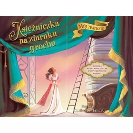 Znajdziesz tu rozkładaną scenę ze skrzydełkami, piękne dekoracje oraz tekturowe postaci i podstawki. Czytaj kolejne fragmenty opowieści podczas odgrywania na scenie swojej własnej wersji Księżniczki na ziarnku grochu!