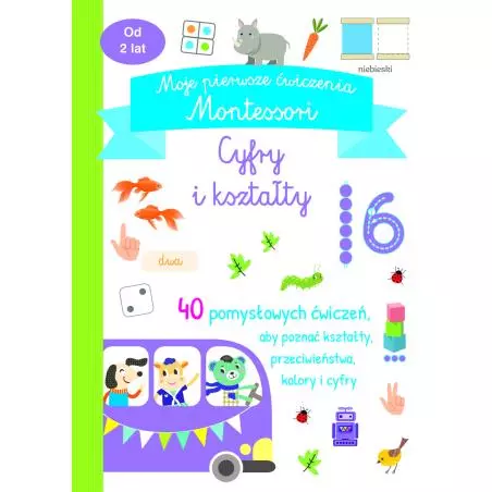 W książce znalazły się proste i wciągające ćwiczenia dla najmłodszych, które przybliżą im podstawowe zagadnienia matematyczne. Na malucha czekają aktywności dotyczące kolorów, kształtów, wymiarów i różnic między nimi, polegające na łączeniu w pary, segregowaniu i układaniu w kolejności. Na kolejnych stronach będzie miał do dyspozycji wzory do nauki zapisu cyfr i ćwiczenia pomagające w ich kojarzeniu z odpowiadającymi im liczbami. Materiały wycięte z końca książki uatrakcyjnią zabawę.