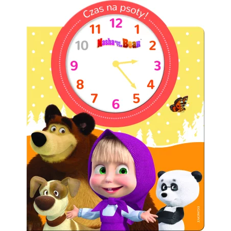 Dla Maszy zawsze jest dobry czas na psoty! O której mała psotnica poszła z Niedźwiedziem na ryby? Do której bawiła się z dalekim kuzynem Niedźwiedzia misiem pandą, skoro na drugi dzień gość prawie zaspał na swój poranny pociąg powrotny? Dowiedz się, jak mała Masza i jej przyjaciele spędzili swój dzień, i ćwicz razem z nimi posługiwanie się zegarem.