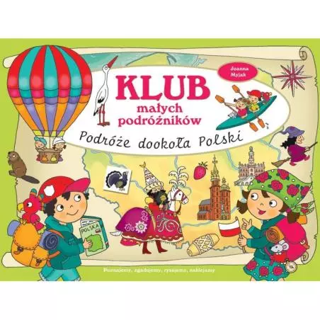 Blok z zadaniami i naklejkami. Zawiera zabawnie ilustrowane mapy Polski z podziałem na regiony, województwa, uwidaczniające najważniejsze miasta oraz mapy poszczególnych regionów.