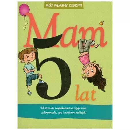 Masz 5 lat To cudownie Oto zeszyt specjalnie dla ciebie To zeszyt na pamiątkę - wypełniony grami ćwiczeniami kwestionariuszami historyjkami do wymyślania rysunkami do kolorowania i naklejkami do przyklejania. Przez cały rok aż do swoich 6. urodzin wypełniaj te strony najładniejszymi kolorami Do dzieła W serii Mam 4 lata Mam 5 lat Mam 6 lat Mam 7 lat.
