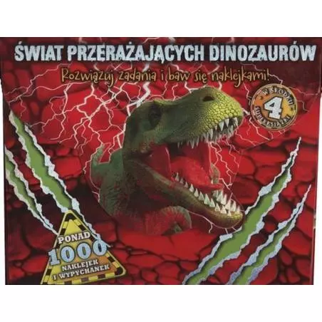 W tej niesamowitej teczce znajdziesz 4 książki, pełne ciekawych zadań, barwnych ilustracji i propozycji zabawnych gier i informacji o najstraszliwszych zwierzętach, jakie kiedykolwiek żyły na